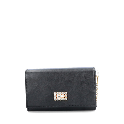 Wizytowa torebka typu listonoszka to stylowy i elegancki dodatek, który doskonale nie tylko komponuje się z wieczorowymi lub formalnymi stylizacjami. Torebka została wykonana z najwyższą starannością i dbałością o każdy detal. Do jej produkcji zastosowano materiały wysokiej jakości. Wewnątrz znajduje się jedna główna kieszeń oraz mała kieszonka, która pomieści najmniejsze drobiazgi. Torebka zamykana jest na praktyczny magnes. Posiada odpinany, złoty łańcuszek, dzięki któremu możesz nosić listonoszkę jako kopertówkę w dłoni lub na ramieniu. Uniwersalny i subtelny czarny kolor, współgra doskonale ze srebrną ozdobą, umiejscowioną na klapie.