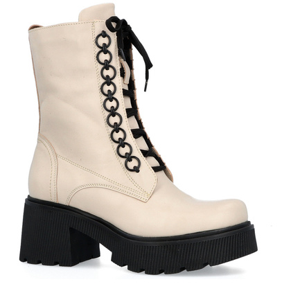 Sznurowane botki ze skóry w pięknym odcieniu jasnego beżu to model butów, który wykorzystasz również do codziennych stylizacji. Chcesz ożywić swoją stylizację i nadać jej niecodziennej formy? Z botkami na platformie sprawa będzie załatwiona! Każde, nawet to najbardziej klasyczne zestawienie będzie wyglądać wyjątkowo. Załóż szerokie spodnie wraz z czarną ramoneską i skieruj wzrok otoczenia w swoim kierunku. Aby przedłużyć idealny wygląd obuwia, zapoznaj się z naszą szeroką gamą kosmetyków do pielęgnacji i impregnacji obuwia.
