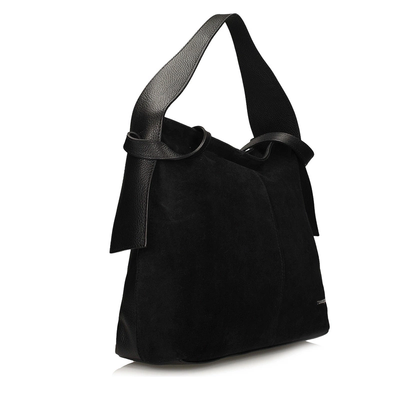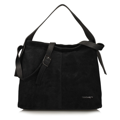 Głęboka, czarna barwa sprawia, że torebka prezentuje się wyjątkowo elegancko i z łatwością dopasowuje do niemal każdego outfitu. Prosty, klasyczny krój modelu Toscanio G39 podkreśla jego ponadczasowy charakter. Minimalistyczny design w połączeniu z wyrazistą fakturą zamszu tworzy harmonijną całość – idealną dla kobiet, które preferują subtelne, ale wyraziste dodatki.