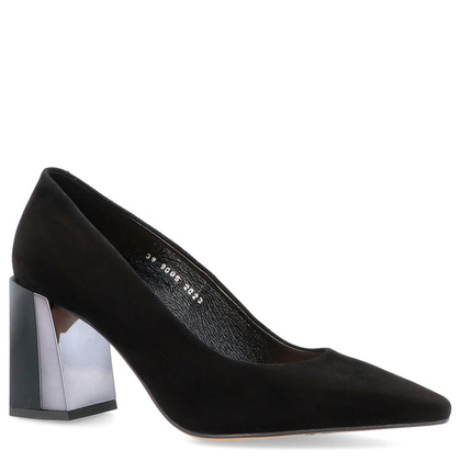 Klasyczne, a zarazem eleganckie czółenka damskie w kolorze głębokiej czerni, zostały wykonane przez polskiego producenta obuwia skórzanego - firmę KOTYL. Ich ponadczasowy wygląd oraz wyprofilowanie gwarantują wygodę i komfort podczas użytkowania. Czółenka wykonane są w całości z naturalnej skóry zamszowej. Nosek uformowany w szpic optycznie wysmukla sylwetkę. Szeroki, 7,5 - centymetrowy obcas zapewnia stabilność podczas całodniowego maratonu obowiązków lub imprezy do białego rana! Do butów dodajemy zapasowy komplet fleków, tak abyś mogła jak najdłużej cieszyć się z użytkowania zakupionego obuwia.