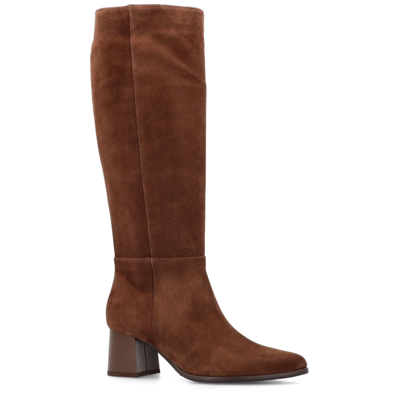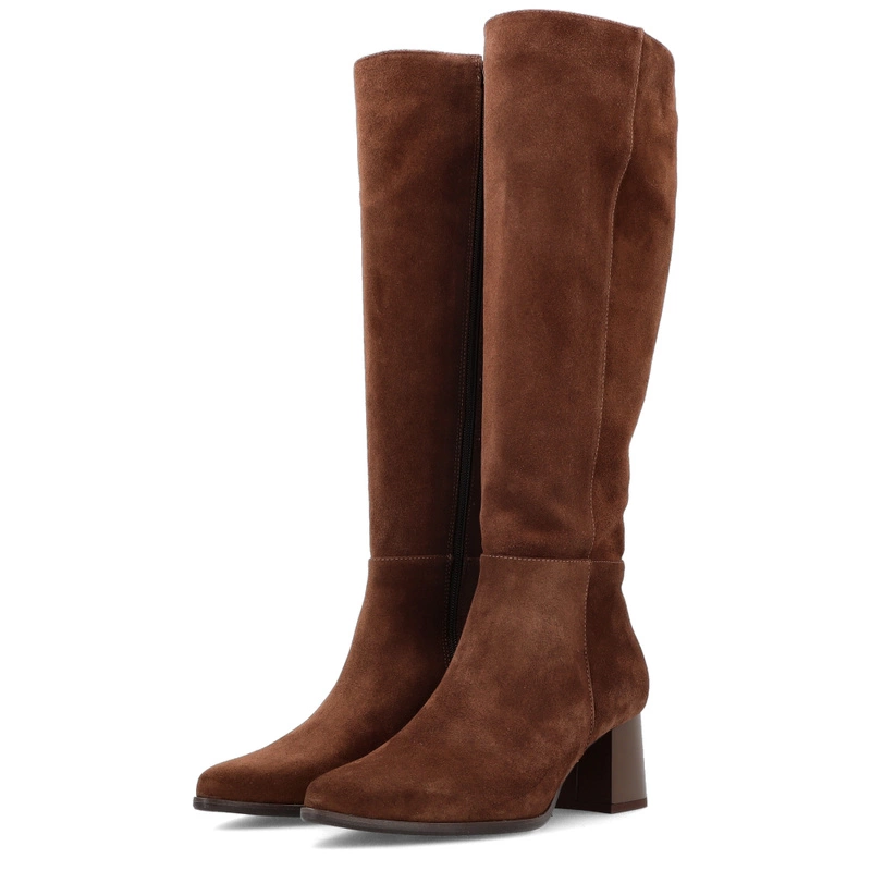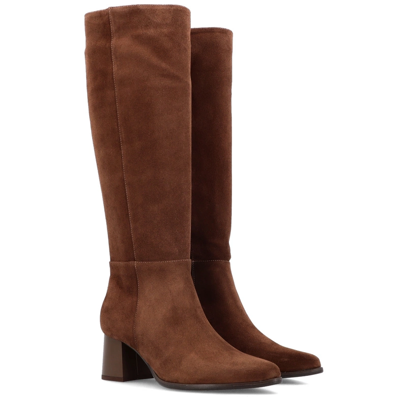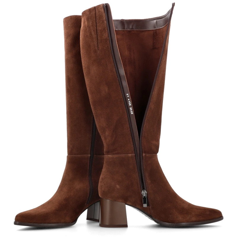 Zamszowe kozaki na obcasie - KOTYL 4729 CZEKOLADOWE