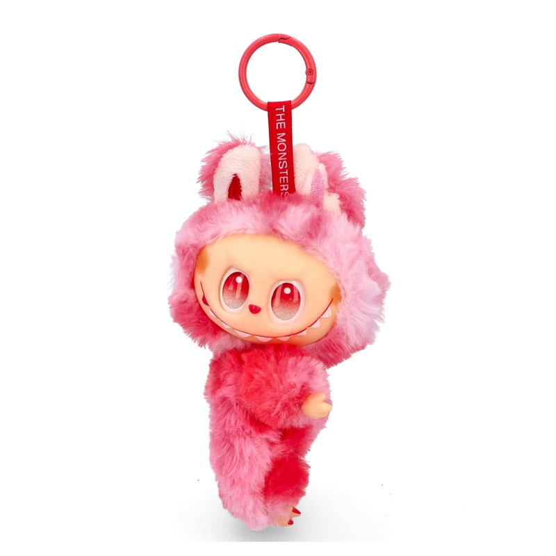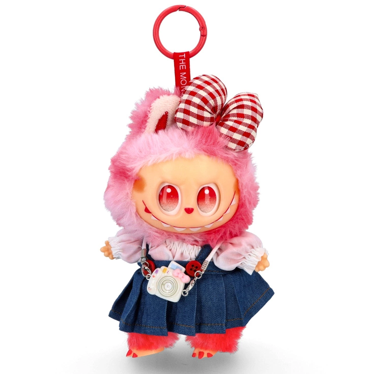 Maskotka Labubu Różowo-Czerwona z Kokardą i Aparatem – Edycja V3 z GRATISOWYM UBRANKIEM