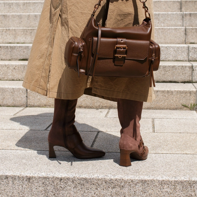 Zestaw Hispanitas w eleganckim, brązowym odcieniu to kwintesencja hiszpańskiego stylu i kobiecej klasy. W skład kompletu wchodzą kozaki z elastyczną cholewką wykonane z połączenia skóry naturalnej i tkaniny oraz torebka ze skóry ekologicznej, które razem tworzą harmonijny, ponadczasowy duet. To propozycja dla kobiet, które pragną połączyć elegancję z wygodą w najlepszym wydaniu marki Hispanitas.