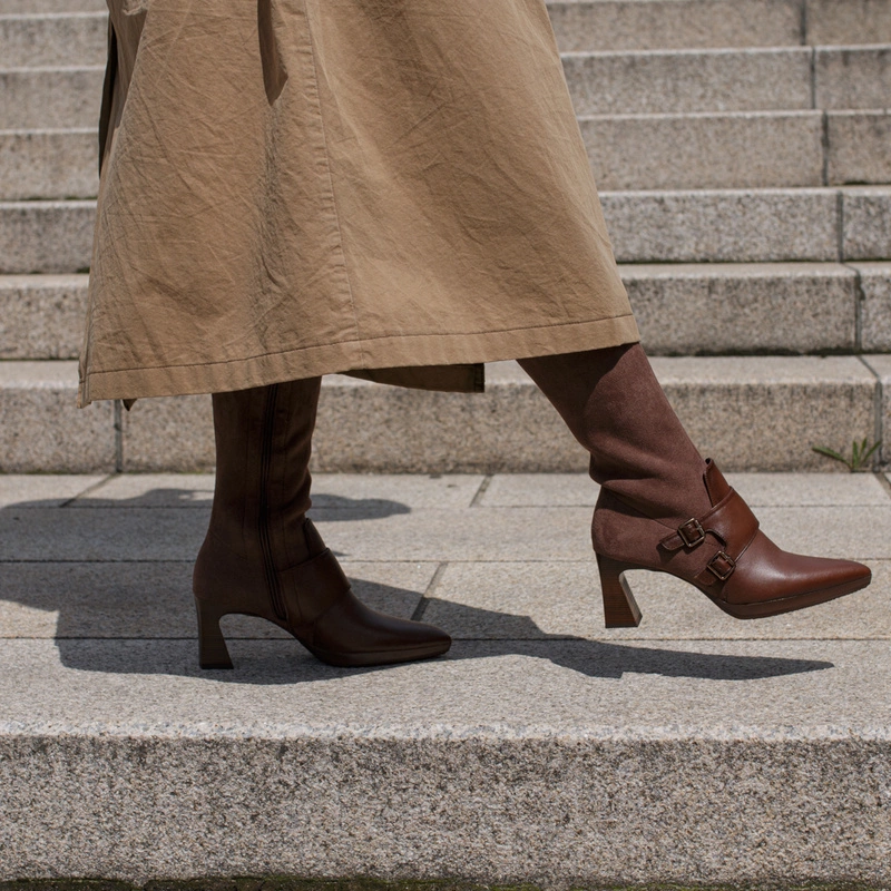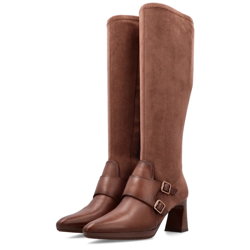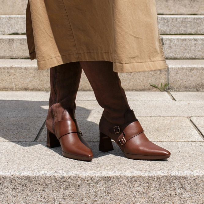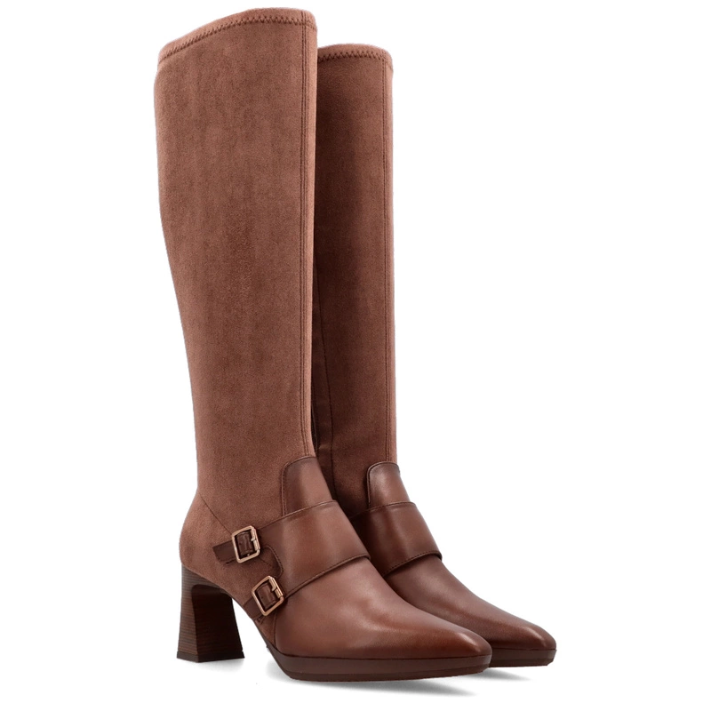 Brązowe kozaki Hispanitas HI254329 zachwycają dopracowanym fasonem i perfekcyjnym dopasowaniem do nogi. Elastyczna cholewka z tyłu ułatwia zakładanie i gwarantuje idealne przyleganie, podkreślając smukłą linię łydek. Połączenie skóry naturalnej z wysokogatunkowym materiałem tekstylnym zapewnia nie tylko trwałość, ale także komfort użytkowania przez cały dzień. Stabilny obcas wysmukla sylwetkę, czyniąc ten model idealnym zarówno do pracy, jak i na wieczorne wyjścia.