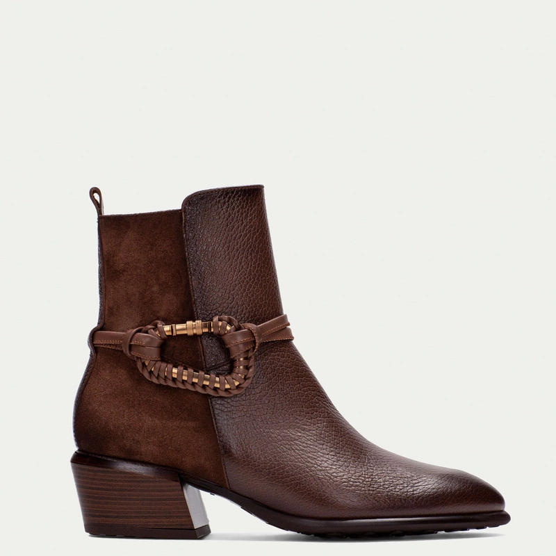 Brązowe kowbojki HISPANITAS to model, który łączy modny design inspirowany stylem western z wygodą i najwyższą jakością wykonania. Smukły nosek, subtelne przeszycia i średni, stabilny obcas dodają im elegancji i kobiecego charakteru. Wykonane z miękkiej skóry naturalnej, zachwycają elastycznością i komfortem użytkowania. Dzięki technologii TRIFLOW, typowej dla marki HISPANITAS, buty gwarantują idealne dopasowanie i amortyzację przy każdym kroku.