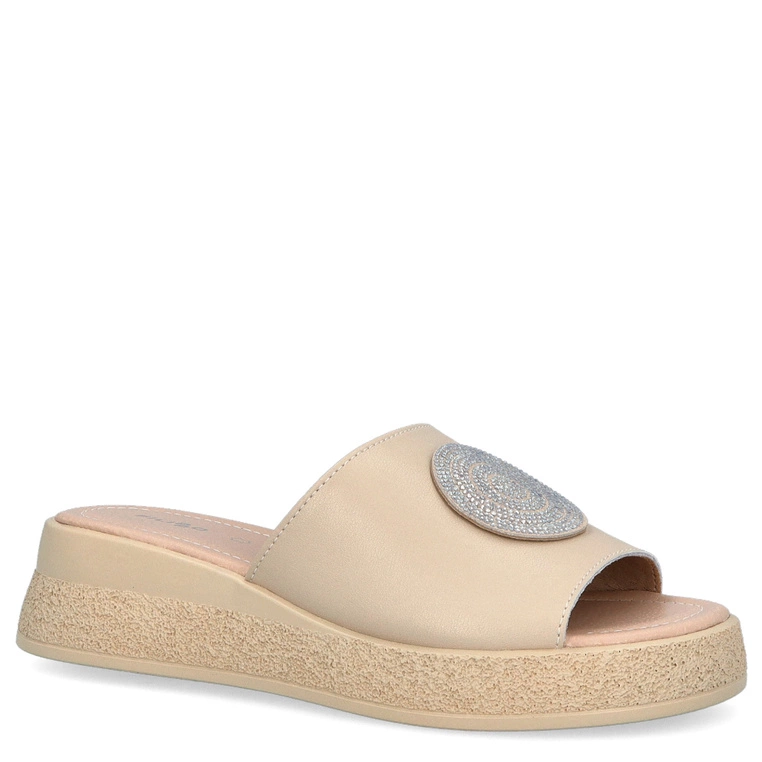 Skórzane sandały z ozdobą - SCAVIOLA S-338 BEŻOWE